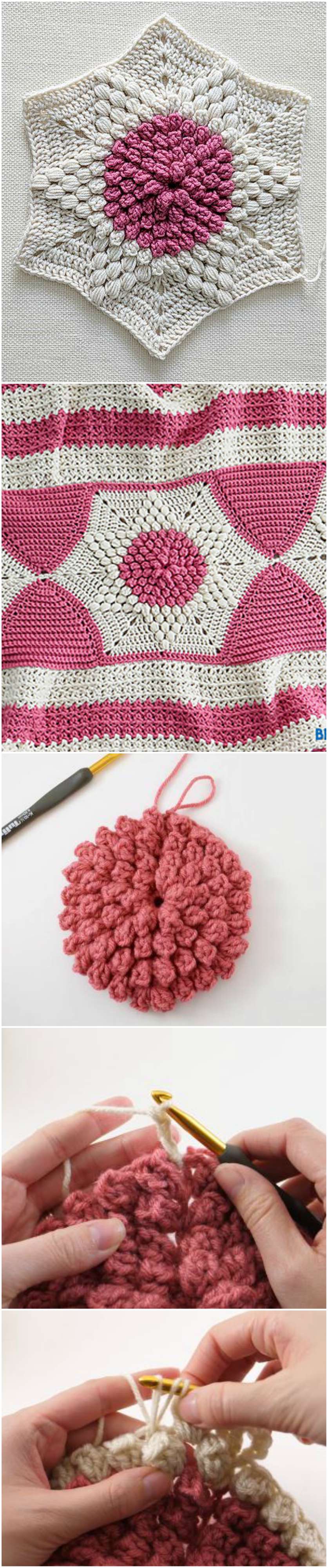 Crochet Puff Stitch Hexagon