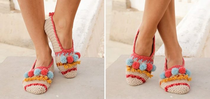 Crochet Pompom Home Slippers